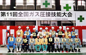 全国圧接業協同組合連合会主催、国土交通省・(社)日本圧接協会・(社)全国鉄筋工事業協会後援の第11回全国ガス圧接技能大会が、摂津市にあります雇用能力開発機構・関西職業能力開発促進センターにおいて開催されました。