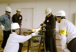 この講習会は、平成20年12月から2年間かけて技術者が現場で必要な圧接知識、技術を習得します。